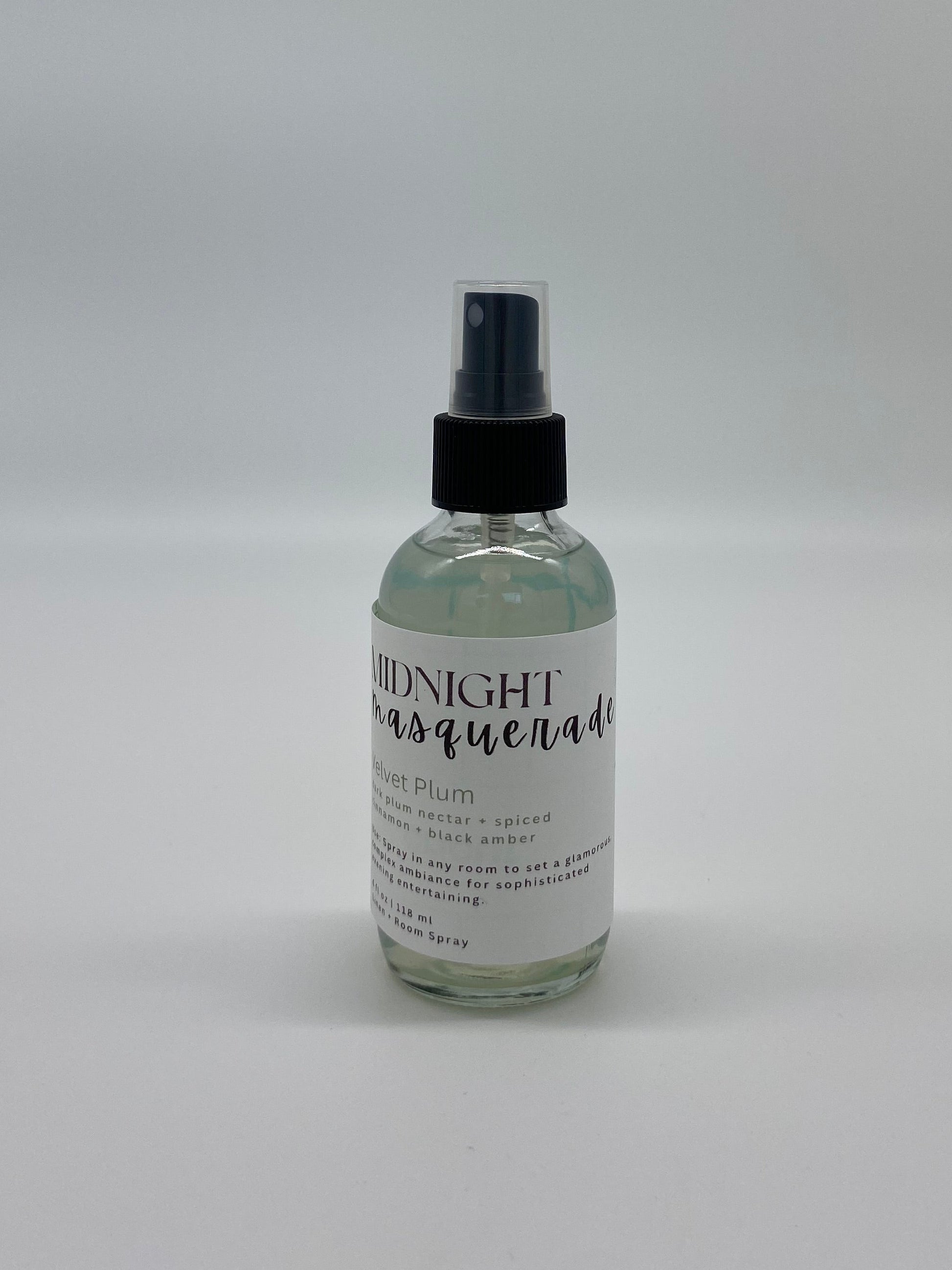 Midnight Masquerade captures the allure of twilight. Rich velvet plum dances with spiced cinnamon and black amber to create a fragrance as captivating as the night itself. Every spritz is a whisper of intrigue, perfect for those who love a little magic in their air.
